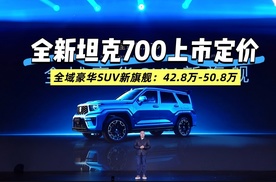 全新坦克700上市定价,售价42.8万-50.8万。全域豪华SUV新旗舰,,配备冰箱彩电大沙发,更首搭VLA大模型,兼具硬核性能与豪华智舱,50万级售价刷新高端硬派越野旗舰认知。