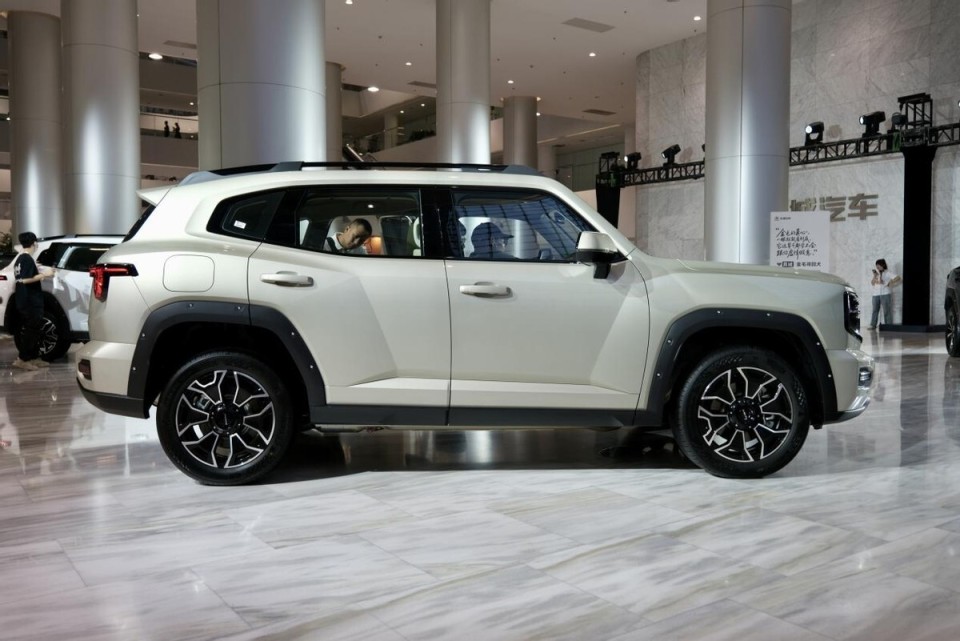 车身侧面保留了哈弗大狗一贯的硬朗的设计风格,铆钉相接的黑色轮眉,一定程度上起到了很好地点缀效果,同时搭配全新样式的轮毂,视觉上给人一种新意。该车保留了车顶行李架功能,这对于长途旅游,喜欢户外探索的朋友,可以拓展更多的储物功能。