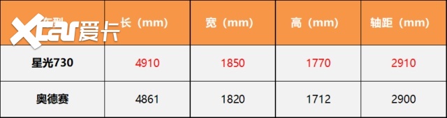 毕竟还没上市,应该很少有人看过实车,给大家列张和奥德赛的尺寸对比图,大概感受一下它的体型。星光730的长宽高分别为4910*1850*1770mm,轴距达到2910mm,这样的尺寸,能为车内空间打下不错的基础。