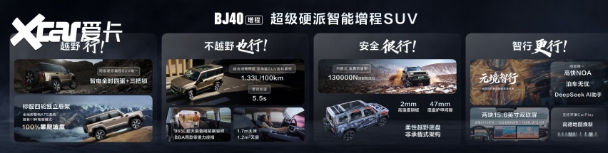 北京越野董事长王昊表示,作为中国越野车发明者,北京越野开创了属于中国人自己的越野车品类。BJ40增程为全球用户开辟了一个全新品类——“硬派增程SUV”,自上市后至今交付量已经突破三万台。北京越野会在这个市场持续创新,迭代优化,把更好、更多、更行的产品带给大家!BJ40增程元境智行就是越野行!不越野也行!安全很行!智行更行!智行硬派SUV,就买BJ40增程。