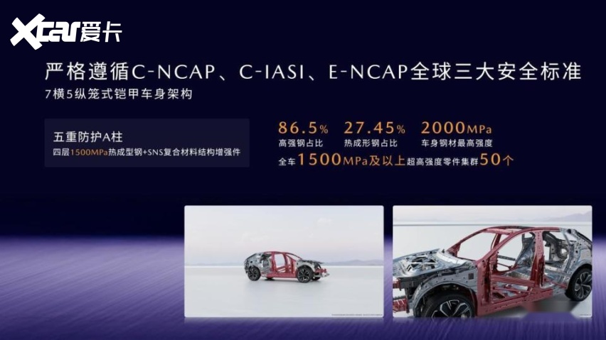 作为全球新能源SUV,EZ-60的设计全面满足全球标准,不仅满足了消费者的安全需求,更实现了“安全性”和“设计美学”的平衡。其车身86.5%由高强钢打造,相较多款量产车,该车型不仅符合中欧双五星安全标准,其采用的宝钢1500兆帕冷冲压钢和2000兆帕热冲压钢,让车身硬度、抗冲击性等指标达到全球领先水平。作为一款家用SUV,EZ-60并未止步于使用功能,而是提升至全球安全标准的标杆高度。这不仅是消费者“隐性的需求”,也是未来市场对汽车的必然转向。