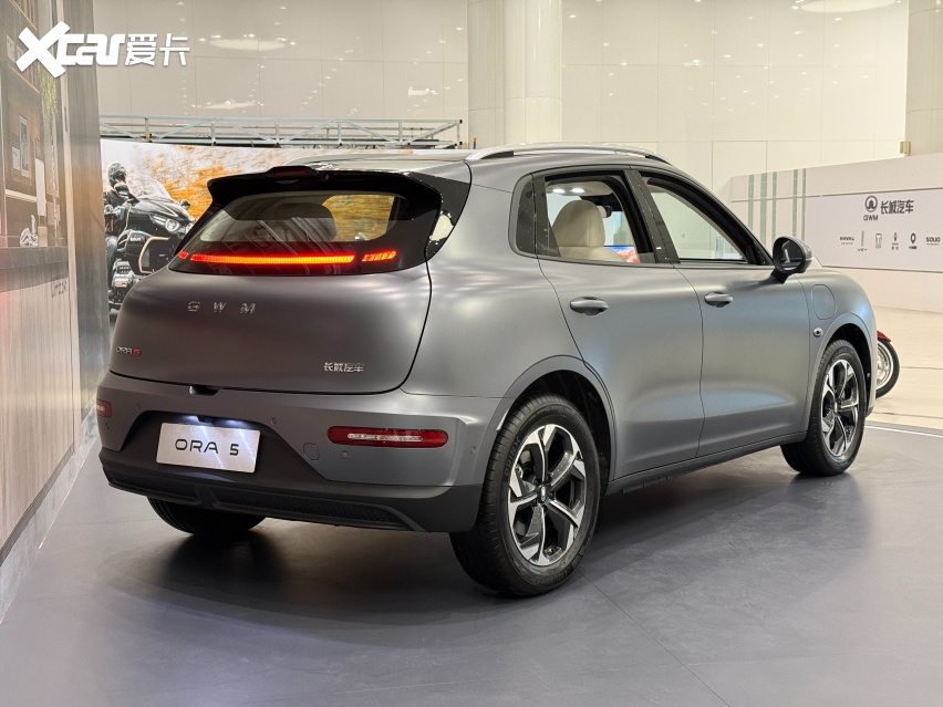 侧面来看,欧拉5的整体造型风格还是有一些欧拉好猫的影子的,不过欧拉5明显车身高度要更高一些,并且车顶还配备了行李架。车身尺寸方面,欧拉5的长宽高分别为4471/1833/1641mm,轴距为2720mm,定位紧凑型SUV。车尾造型简洁,并且同欧拉好猫一样采用了隐藏式尾灯。