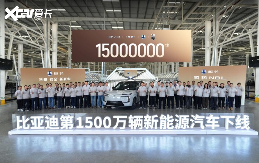 2025年12月18日,比亚迪第1500万辆新能源汽车下线仪式在济南工厂顺利举行,“大六座安全豪华SUV”腾势N8L成为第1500万辆下线车型,这也是腾势N8L的第15000辆下线。比亚迪达成这一里程碑,用了整整17年,从1000万到1500万,只用了短短的13个月,再次刷新中国新能源汽车的“加速度”,更是中国制造业转型升级的体现,也标志着中国汽车工业正式迈入全球引领新阶段。