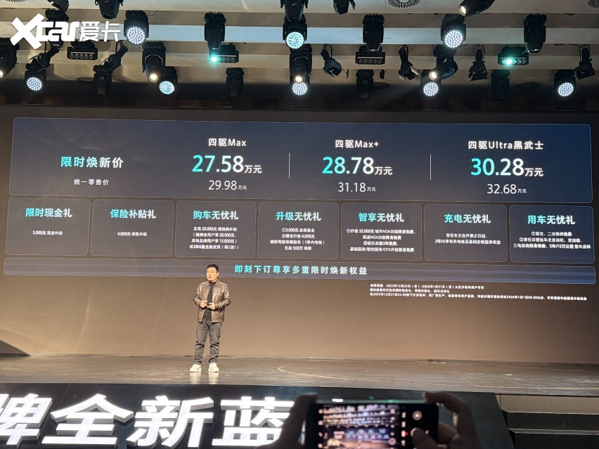 12月22日,2026款魏牌蓝山智能进阶版正式上市,官方指导价29.98-32.68万元,限时焕新价27.58-30.28万元,现在下订有诸多礼遇,包括保险补贴礼、限时现金礼等等,另外官方还有跨年购置税补贴权益,在2025年12月31日前下定并锁单的用户官方会有购置税补贴。