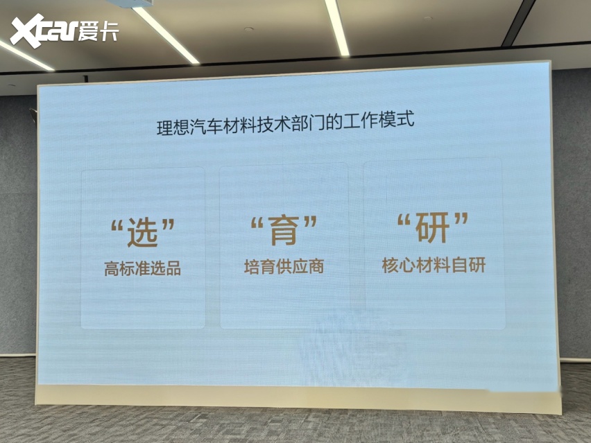 在这次的理想汽车材料技术日上,理想汽车也带来了更多遵循的“选、育、研”而诞生的零部件,我从这三个类别里选几个代表,来给大家一一介绍。