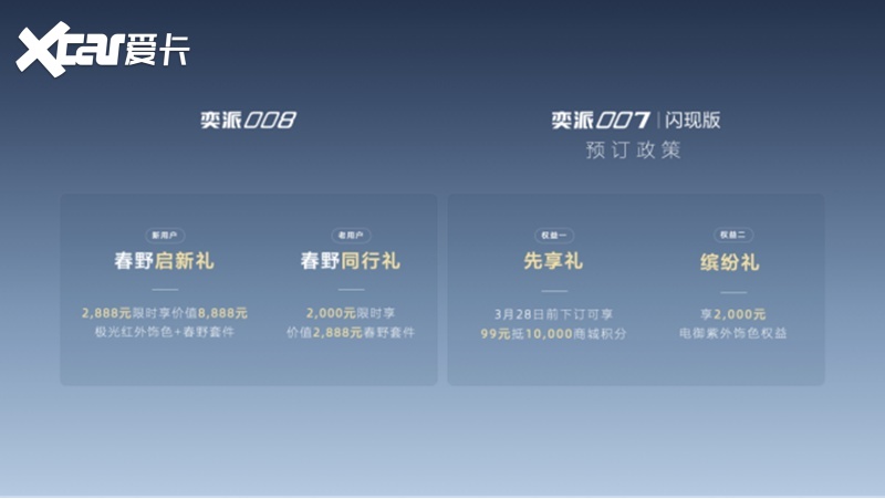奕派008“极光红”全新车色由东风奕派与用户共创,并携手中国国家地理将阿勒泰红色极光复刻于车身,车漆质感通透且抗刮耐磨。以车顶横杆行李架+固定侧踏板+放电插排为组合的“春野套件”,全场景适配城市露营与户外穿越,解锁更自由的探索生活。为回馈新老用户支持,推出限时购车权益,新用户下订极光红外饰色绑定春野套件限时先享价2888元;老用户可在APP下订春野套件,限时回馈价2000元。此外,奕派008即将全系推送OTA 升级,在娱乐影音、行车安全、车机智能交互等方面,全面优化用车体验,为用户带来更安全、更好玩的用车体验。