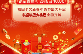卡文大集开年大吉立春遇新年,年味福利全拉满!2 月 6 日上午 10 点起抖音搜索话题 #卡文大集开年大吉 参与直播有机会获得福田卡文丰盛年货大礼包,徐福记大礼包、胖东来啤酒、东北